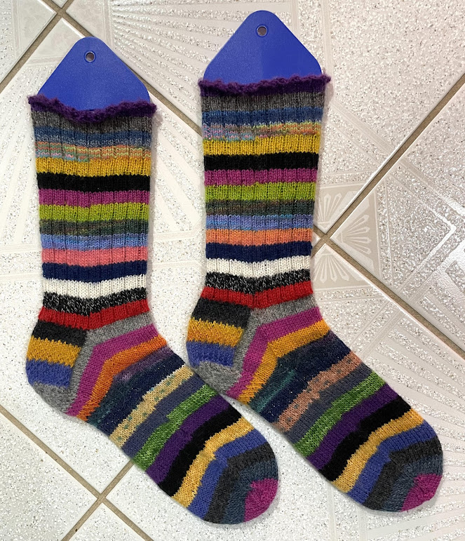 On the craft front, I started another pair of two-at-a-time, scrappy, striped socks. Only a couple more inches to go on the cuffs.