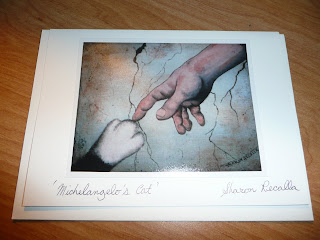 When I got home today, there was mail for me. Sharon had sent me a 4' x 6' photograph of 'Michelangelo's Cat' mounted on a half fold card.