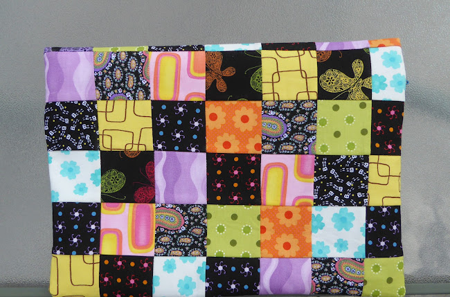 Then OPEN THE ZIPPER and fold the lining, right sides together and the squares right sides together, sew the side seams, the bottom seam of the squares fabric and the lining fabric, leaving a 4" - 5" gap in the bottom of the lining for inserting my hand and turning everything right sides out. All of these steps are covered in Kari's video mentioned in the previous post.