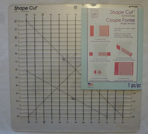 I then stacked the 4 light-ish strips and lined them up under my new Shape Cut cutting template. It has 1/2" slots - great for cutting 2 1/2" squares from jelly rolls. I bought this on my last road trip to the US and today was the first time I used it. I trimmed off the pinked edge on the left aligning the left with 0, I then cut at the 2 1/2", 5", 7 1/2", and 10" slots. Then realigned the rest of the stack and cut the rest for a total of 8 stacks of squares. 8 stacks x 2 1/2" = 20" so more than half the strips remained intact. If you don't have the fancy schmancy template, just cut 2 1/2" squares the usual way.With the fusible side of the interfacing face up, I began laying out the dark squares in a checkerboard fashion then filled in with the light squares. This is where the puzzle comes in. There will be all 4 dark fabrics in one row and only 3 in the next. Another consideration is to try not to have two of the same touching at their corners. So far so good.